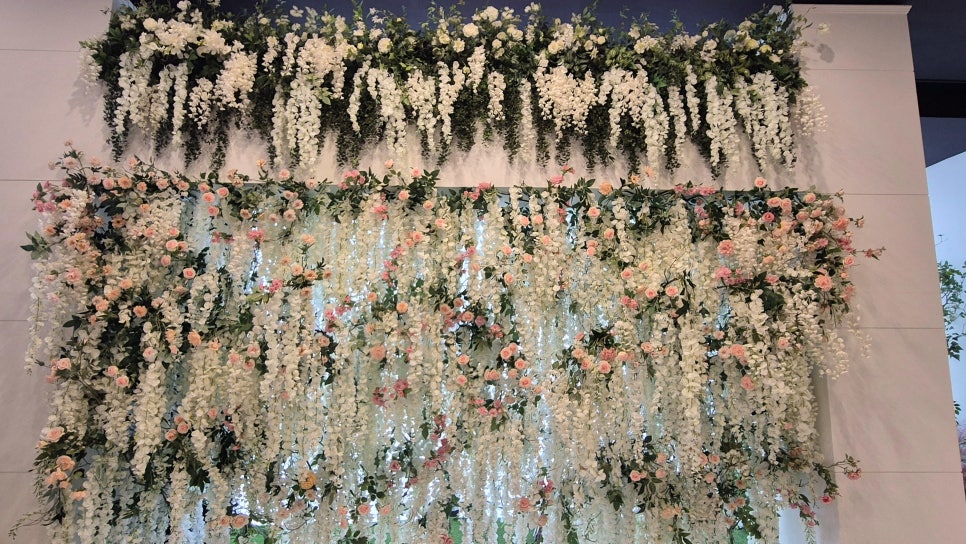 웨딩홀에는 기존 세팅되어 있는 조경에 추가해서 디스플레이 했어요