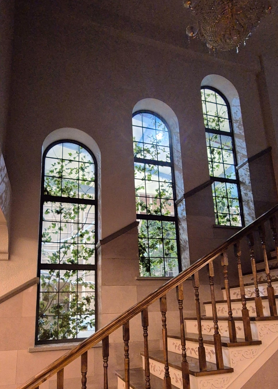 학교의 창문 밖에 덩굴이 보이도록 자연스럽게 세팅했어요