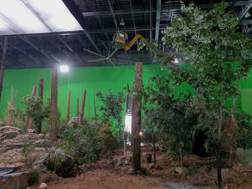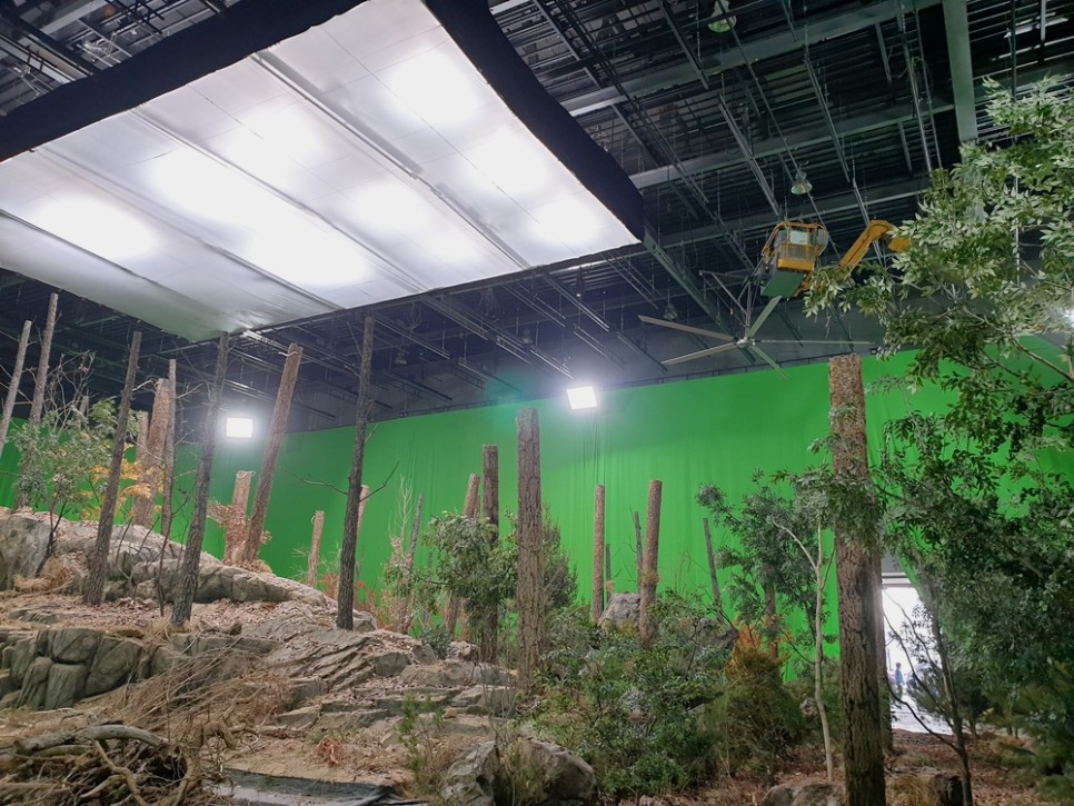 PVC로 만든 나무기둥을 세우고, 인조나무를 세팅했어요