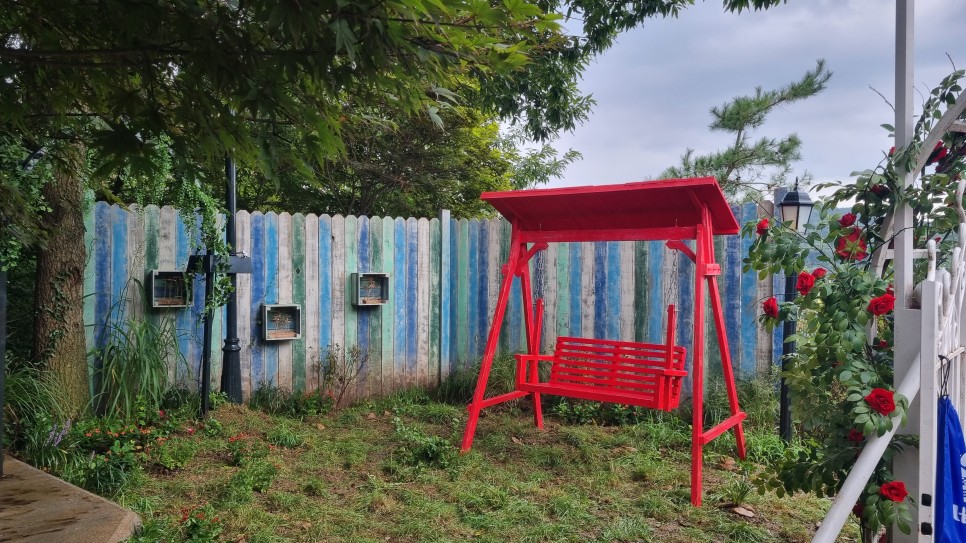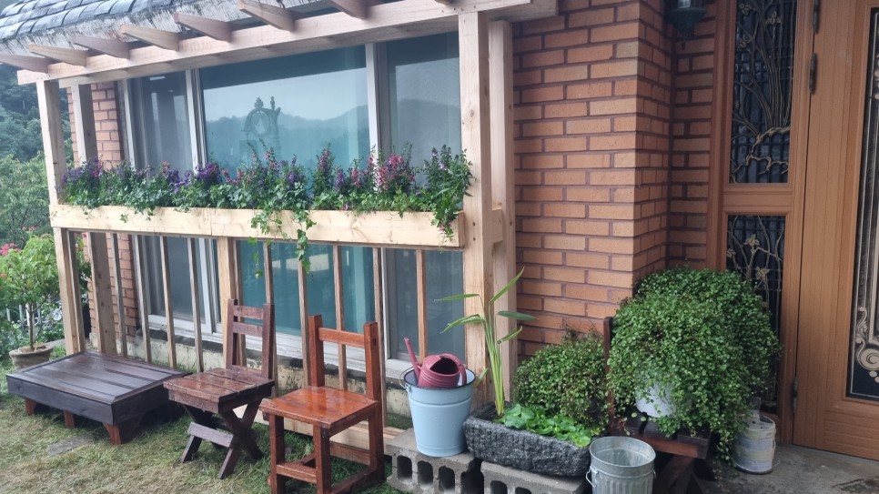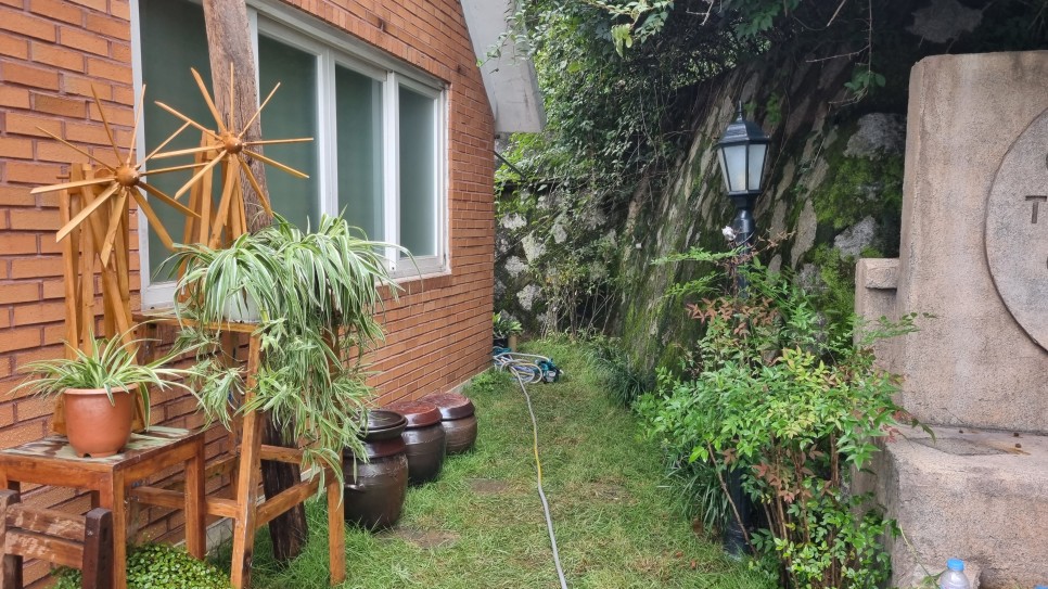 기존의 마당에 흙과 잔디를 깔고 약간의 꽃과 풀을 심었어요
