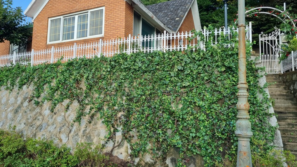 담에 담쟁이를 태우고, 계절 변환씬에는 등꽃도 세팅했어요