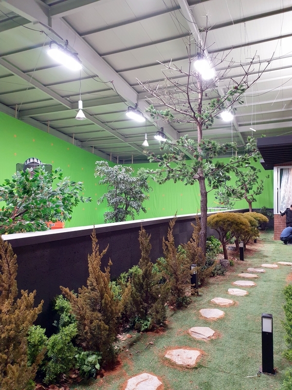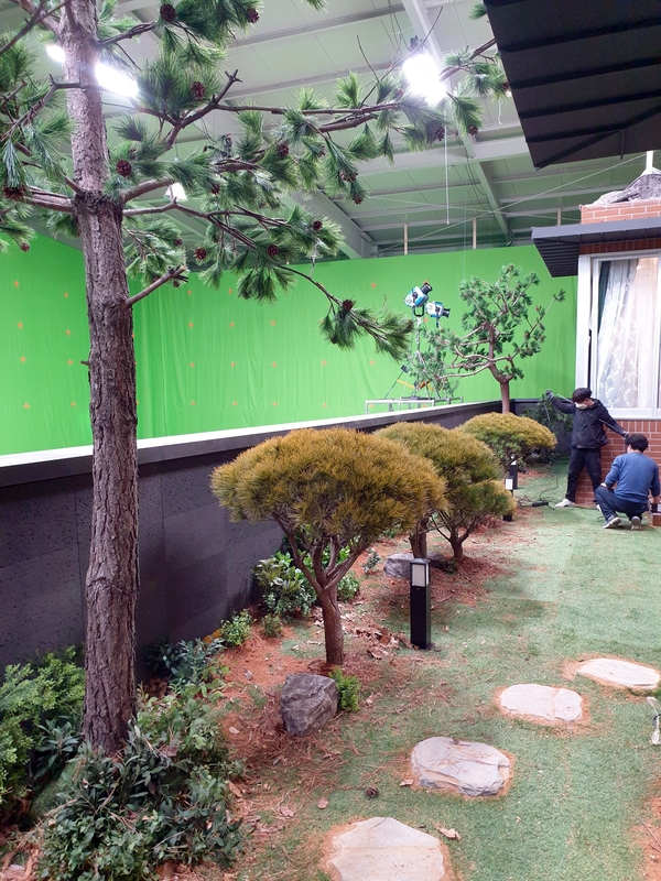 인조 소나무 두 그루를 세팅하고