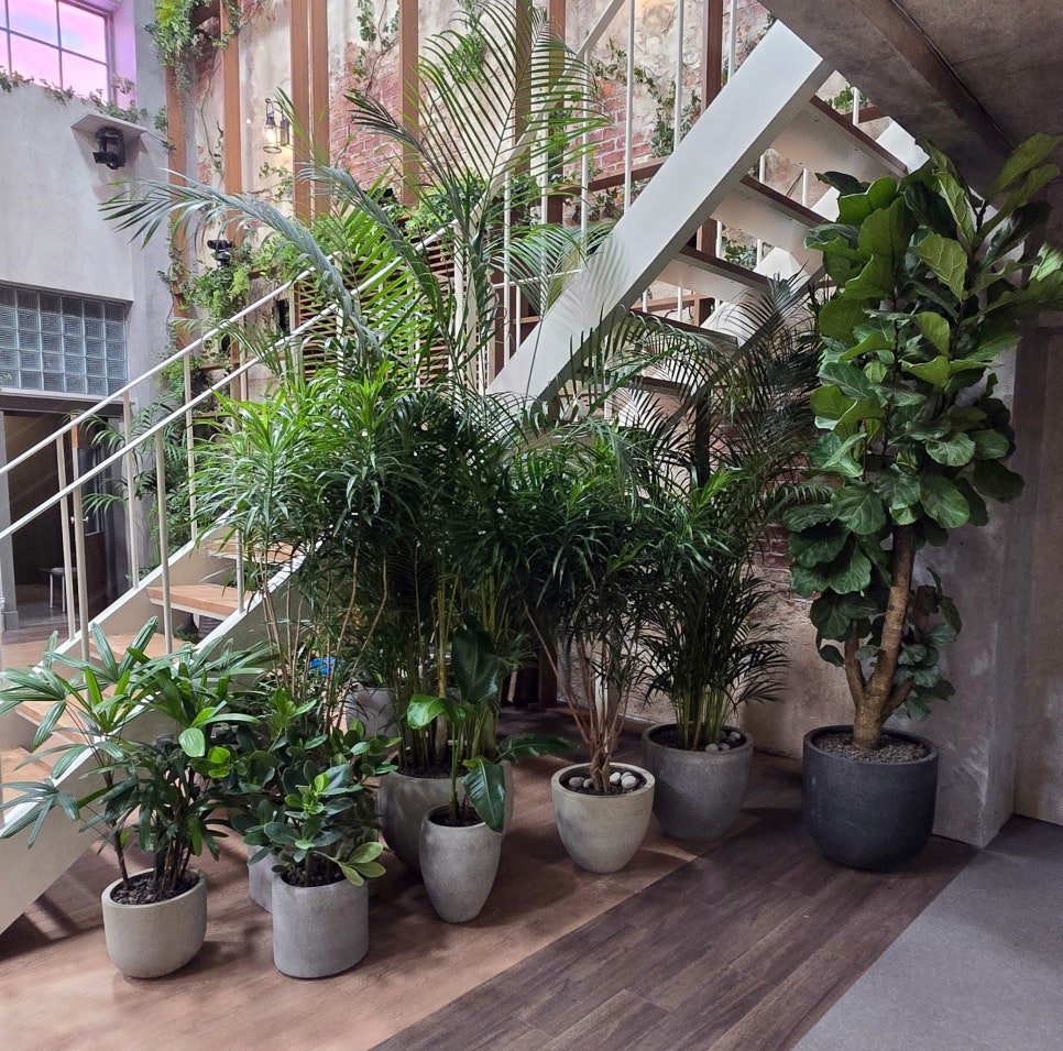 전체 공간 곳곳에 식물이 자연스럽게 어울리도록 디스플레이 했어요