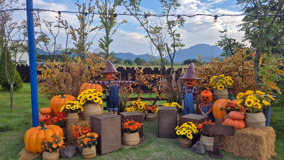 각 공간마다 인조나무, 단풍나무, 갈대, 해바라기, 단풍 넝쿨 등 소품으로 데코했어요~